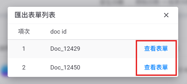 3. 即可查看當筆匯出的所有表單數據,點選【查看表單】會跳至該表單內容。