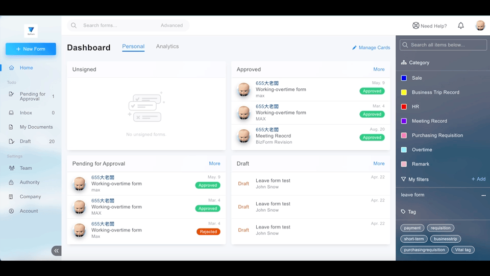 • 簽核表單