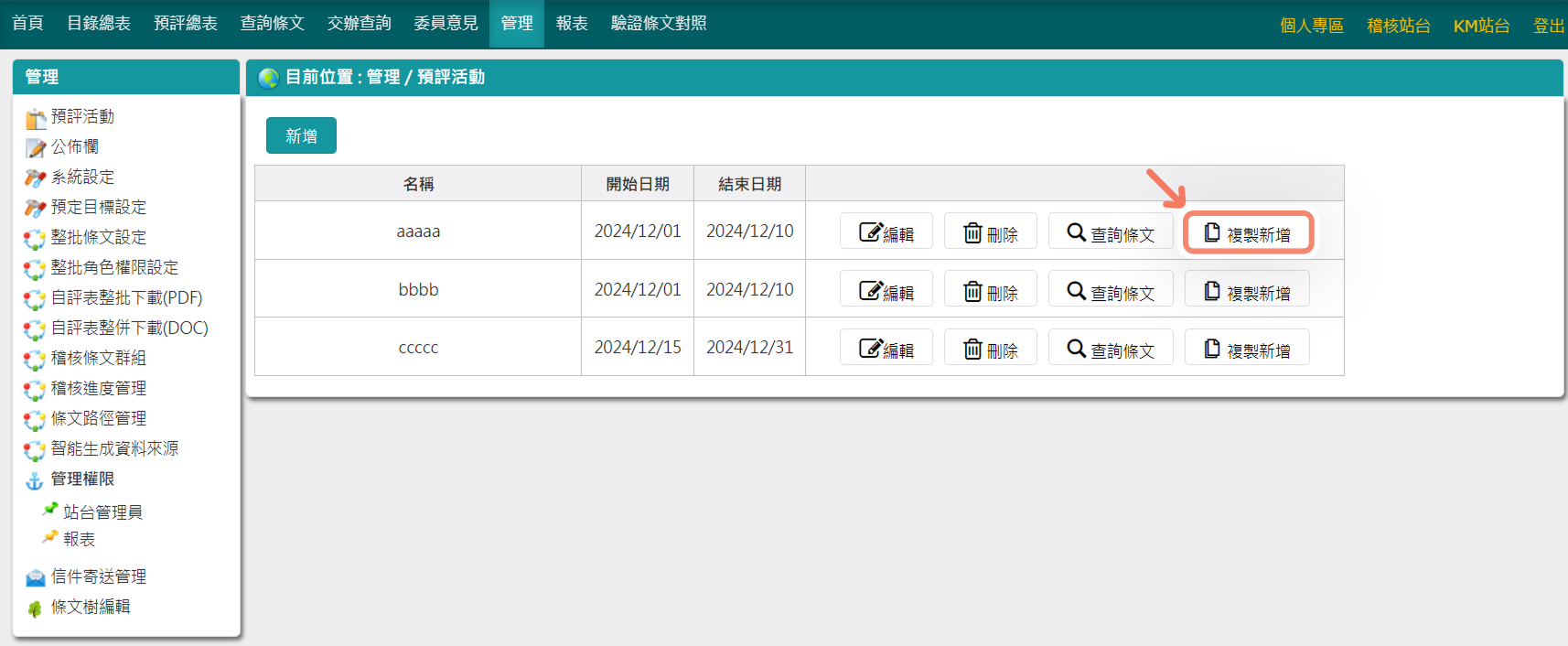 二、預評活動,增加「複製新增」功能