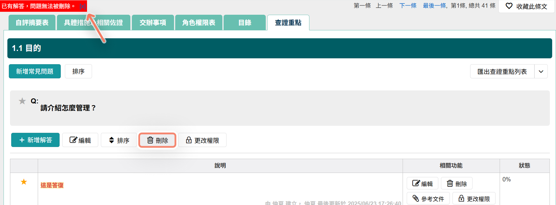 二、查證重點的問題已有解答就不能刪除