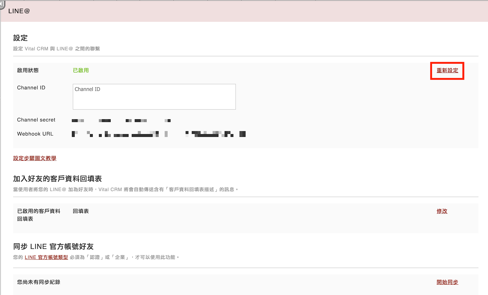 可將原先 CRM 與 line 官方帳號的 Webhook 刪掉重新設定嗎?