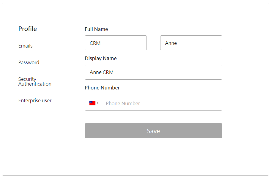 3. You can modify your given name, surname, and display name in your profile of account dashboard. Please click on [Save] to save the changes.