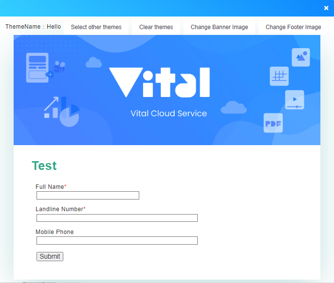 When selecting a background in the edit customer form page, you can use "Select Banner Image" and "Select Footer Image" to replace the original image of the background theme with your custom image to make the form fitting with your store.
