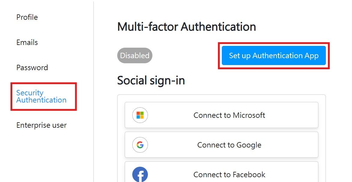 2. Navigate to Security Verification and select Set Up Authentication App.