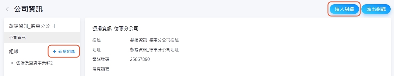 可選擇單筆【新增組織】或批次【匯入組織】。