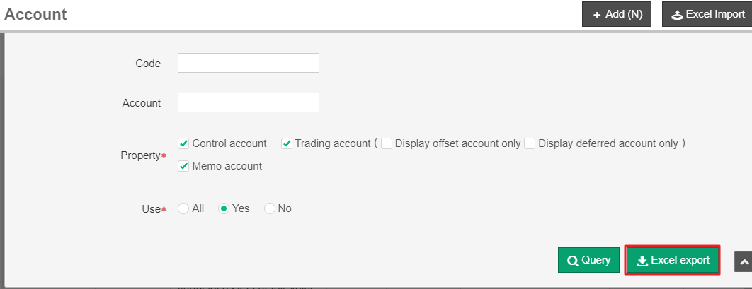 Please go to [Maintenance>Account information>Account]; click [Expand query] and click [Excel export] to export accounts.