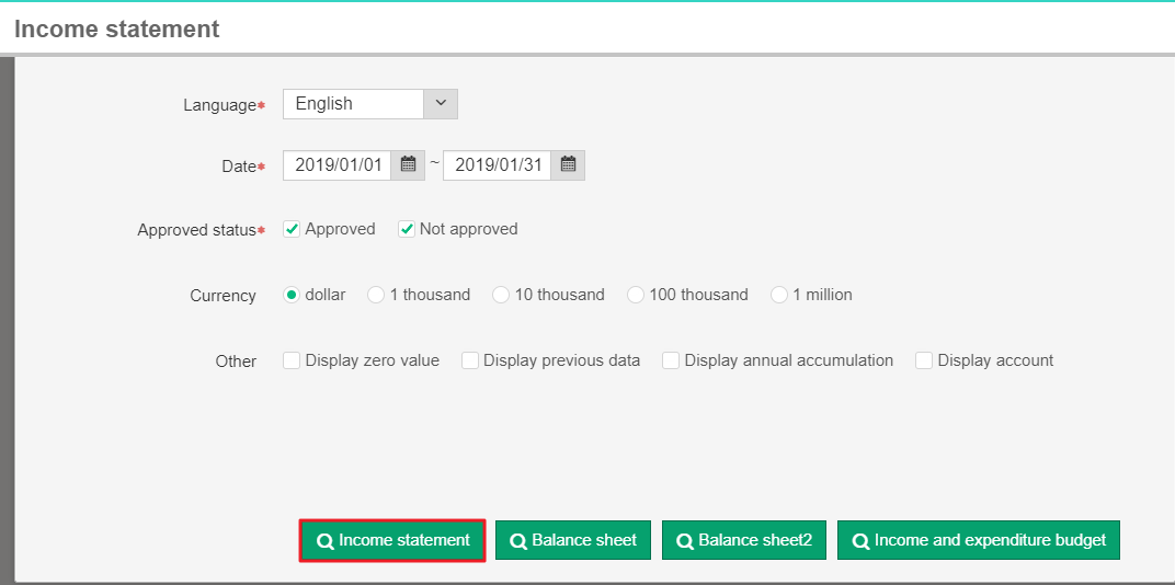 3. Last, you can find income statement in the right bottom corner of the screen.
