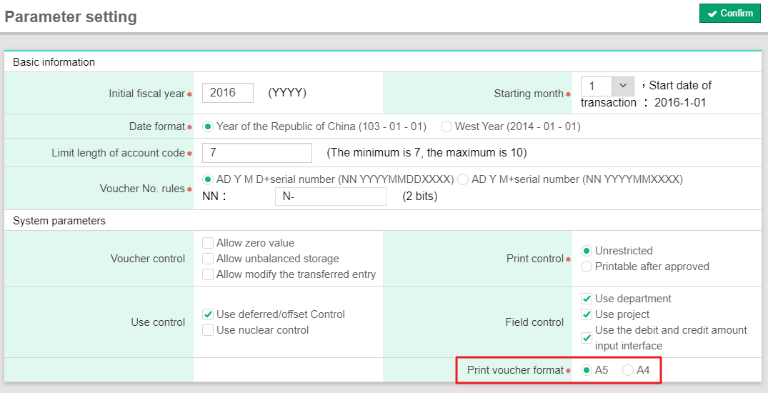 Please click [Maintenance> Parameter setting], and check A4 in [System parameters> Print voucher format].