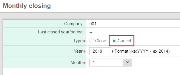 If the month has been closed, you are not able to select previous date. Therefore, you should cancel the closing of that month, and you are able to make up previous vouchers. Please click [Daily work> Monthly closing] to select the date and check [Cancel], and click [Confirm].