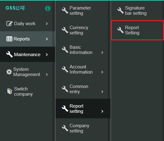 Please click [Maintenance> Report setting>Report setting] to search and adjust current report information.