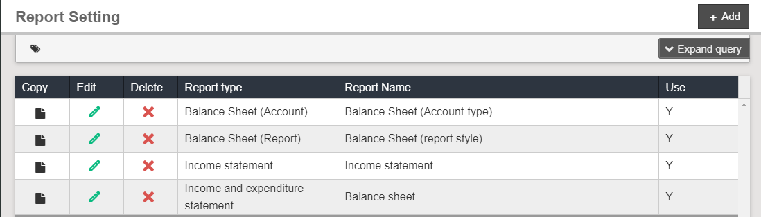 Copy: After copying current report setting, start to add informatin. Make sureit is correct, and you could add a new report setting.