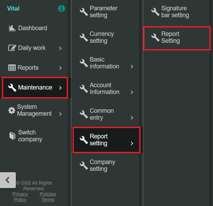 1. Go to [Maintenance] > [Report setting] > [Report setting].