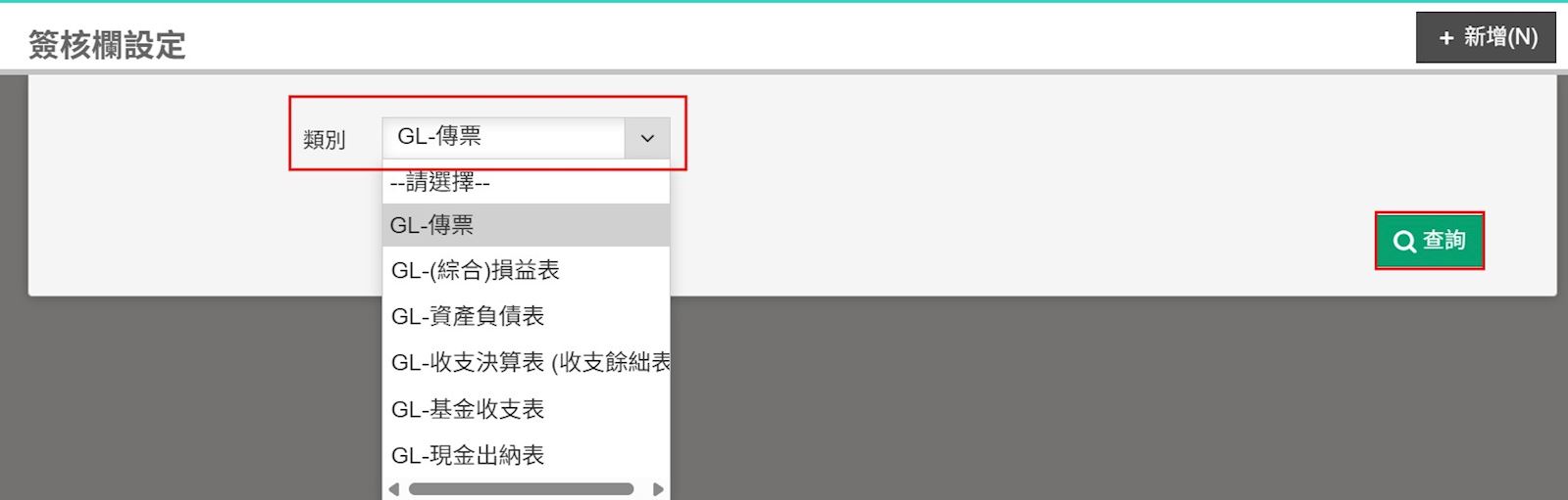 2. 選擇要設定簽核欄的報表類別,點選【查詢】。