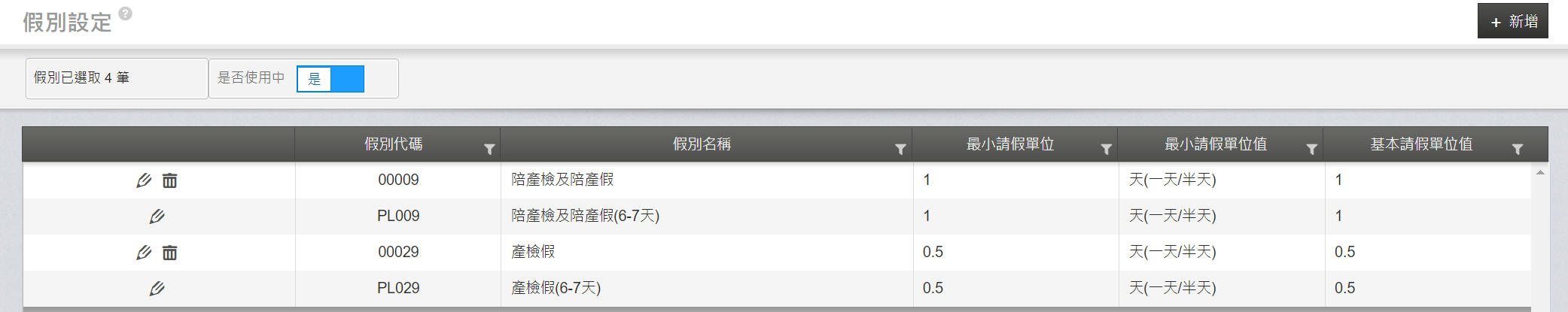 差勤 假別設定 1.調整假別代碼00029為"產檢假"及相關設定