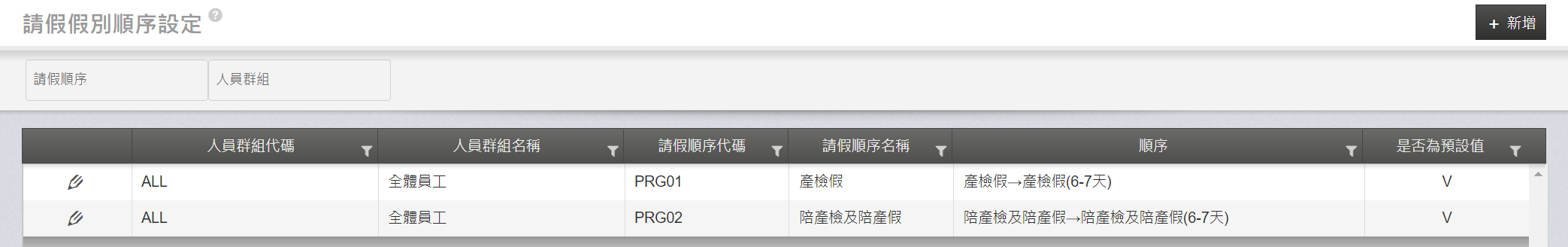 差勤 請假假別順序設定 1.情境:"產檢假"請完以後,才能請"產檢假(6-7天)"