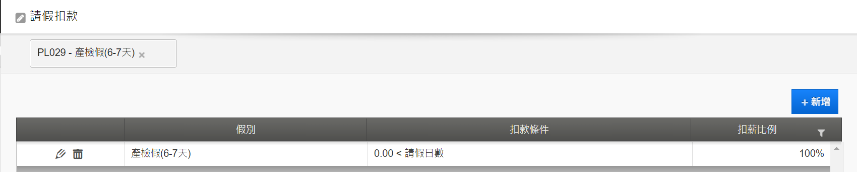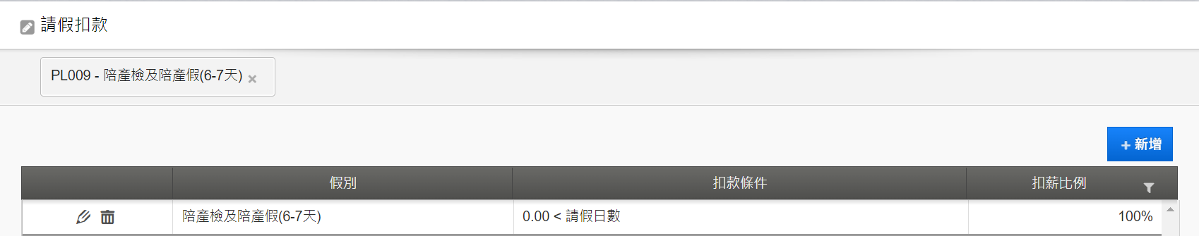 薪資 差勤結算參數設定-請假扣薪 新增 產檢假(6-7天) & 陪產檢及陪產假(6-7天) 規定,扣薪比例為 100%