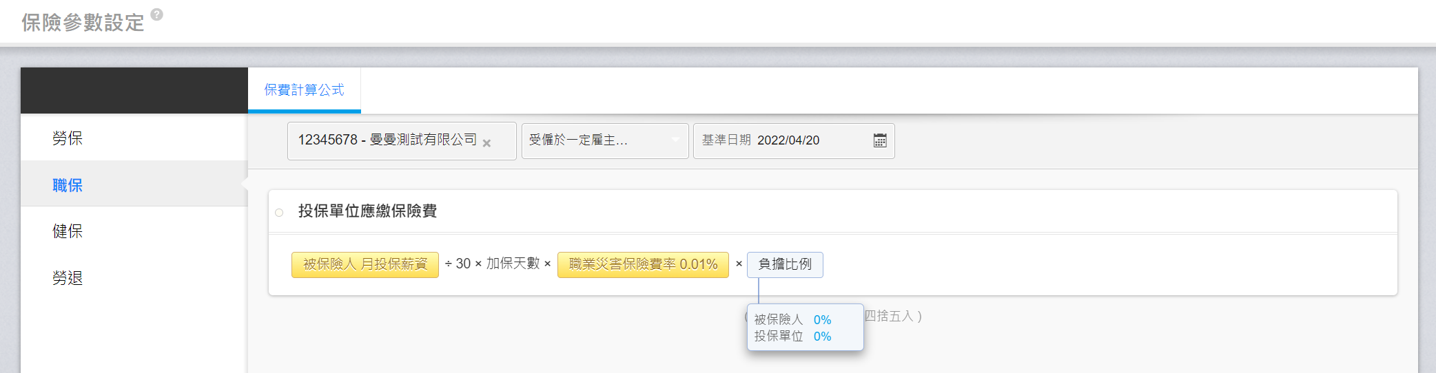 【保險參數設定-職保】5/1 生效,職災為獨立的險種及新增公式