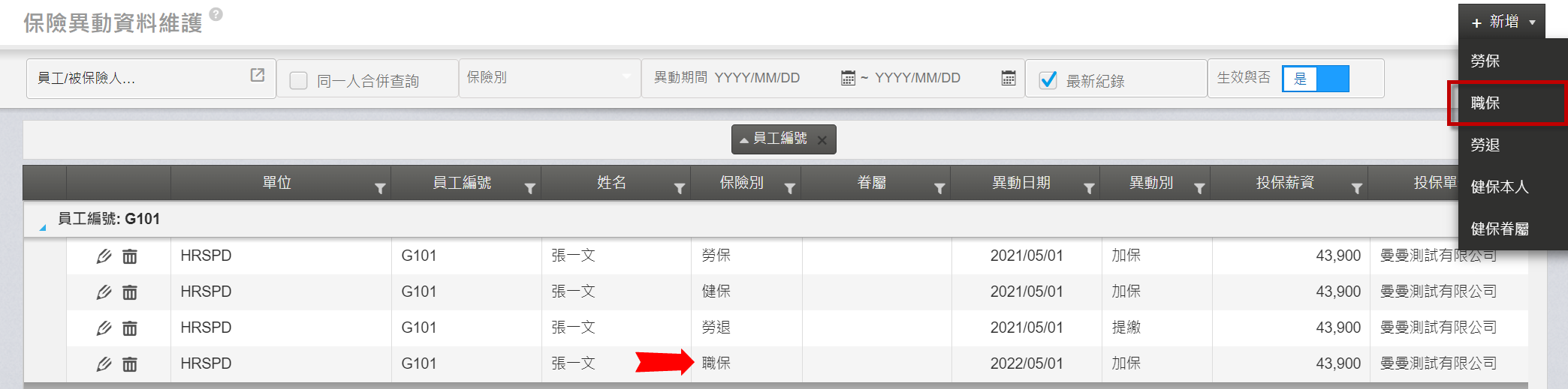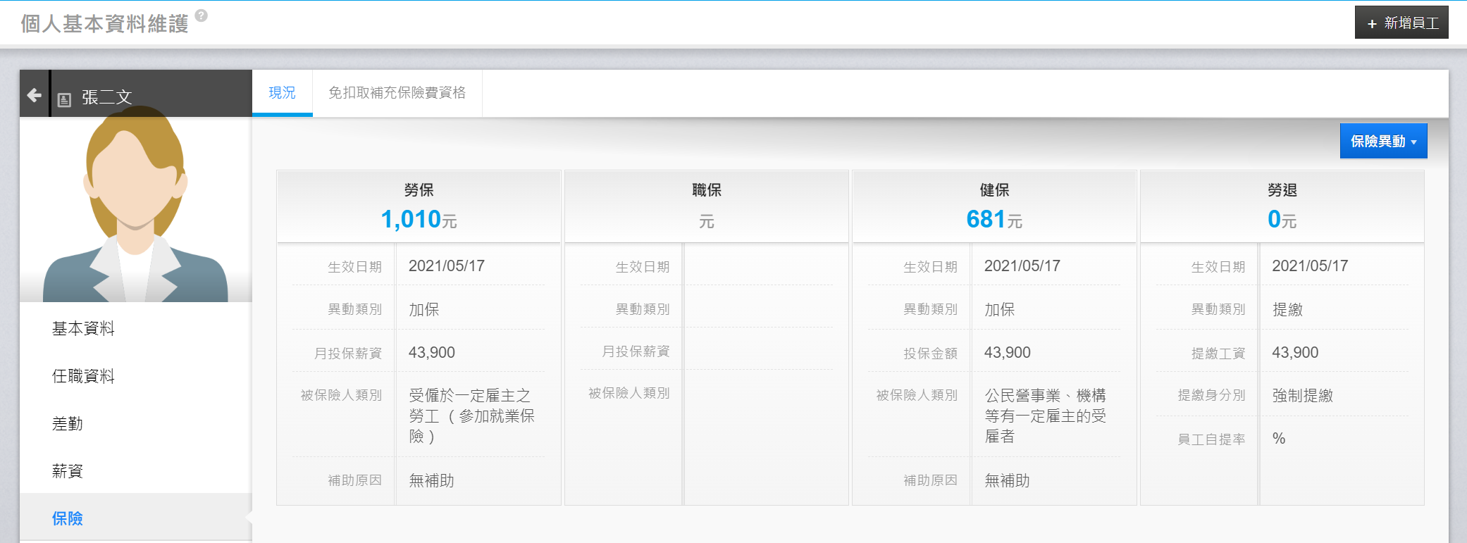 【個人基本資料維護】5/1 生效,新增職保記錄