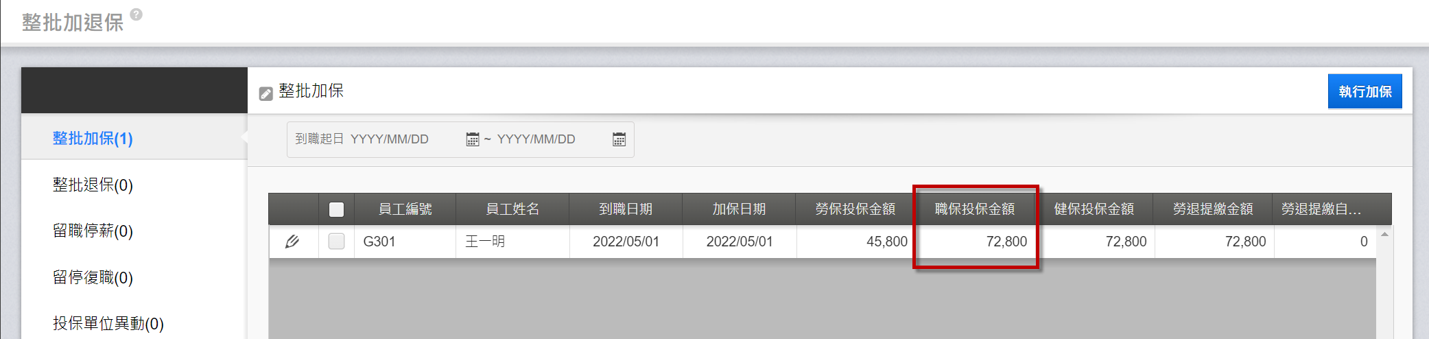 (2) 雇主的職保一律投保 72,800,若有低於最高級距時需申復,在 HCM 上需做保險異動並申報
