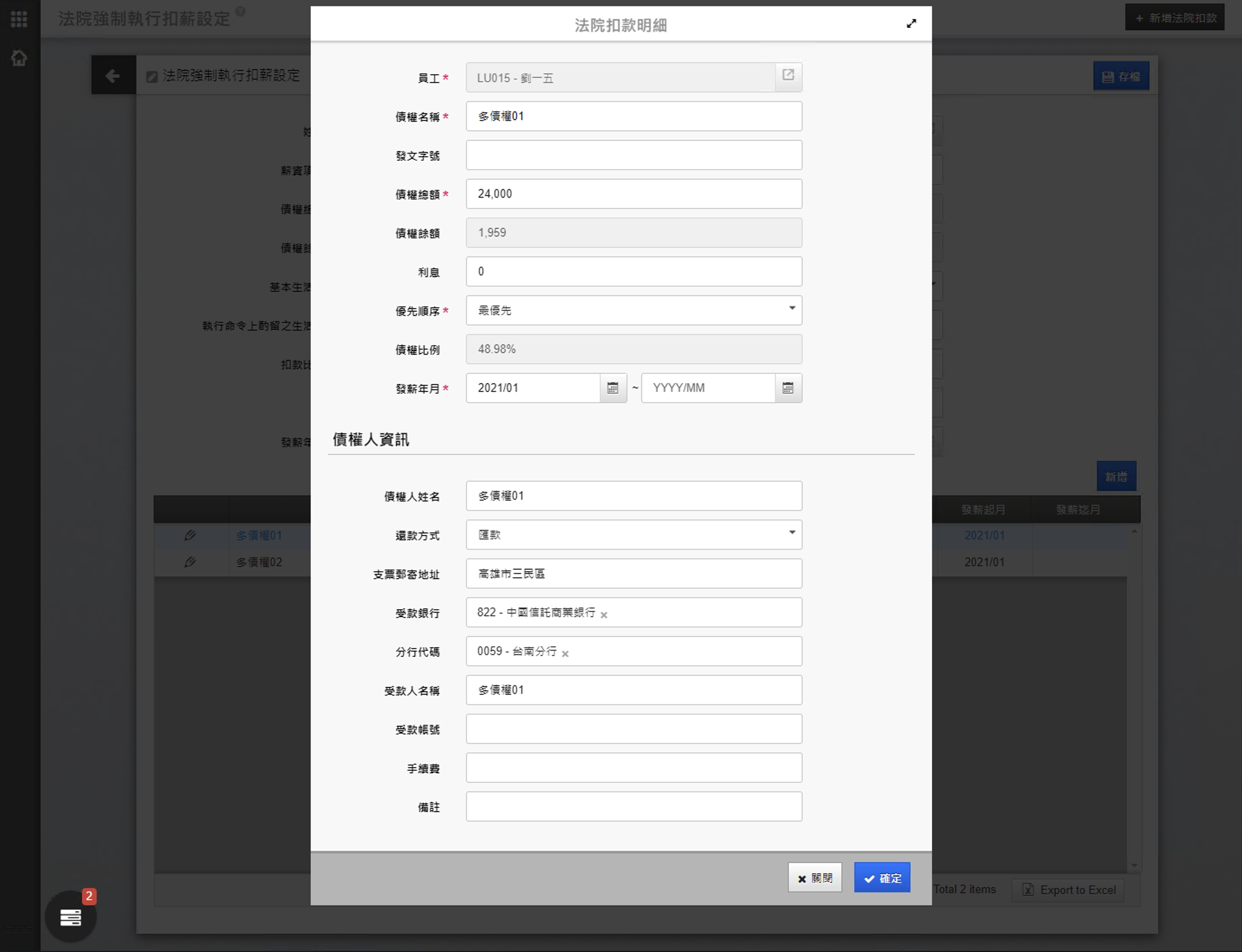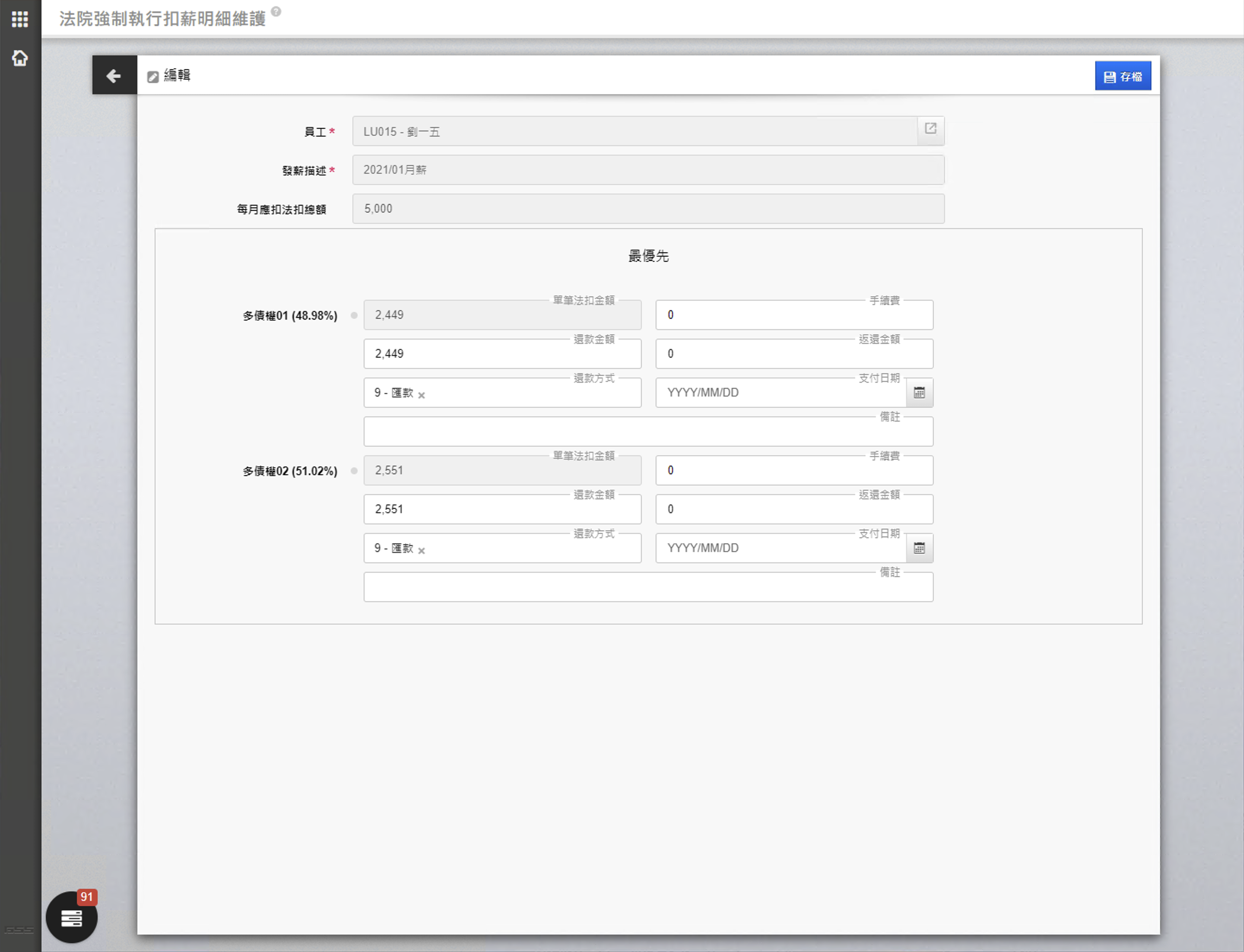 1. 依法規,提供優先債權設定與還款比例自動計算功能