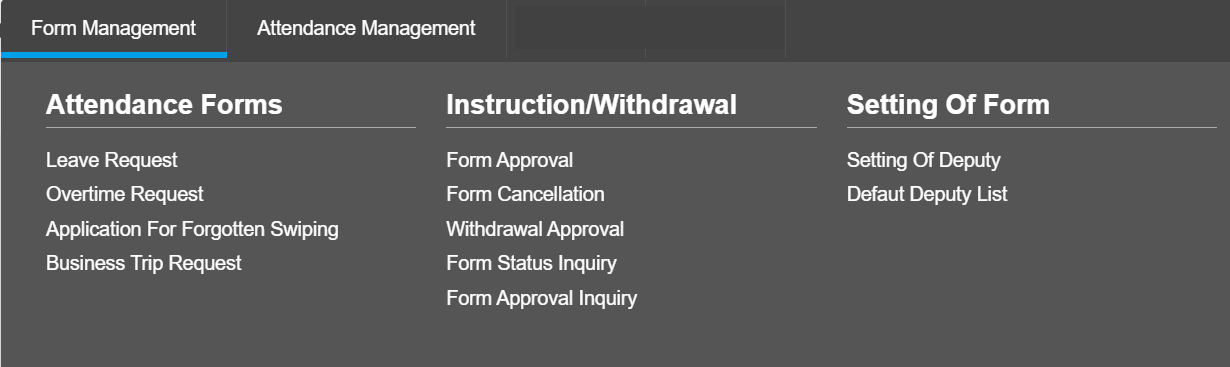 1. 【差勤管理>差勤參數>系統環境設定】需自行設定 HCM 預設出差申請可使用假別代碼為 00024-公出、00025-國內出差、00026-國外出差,若有其它自訂需求可再自行新增假別及修改此參數值