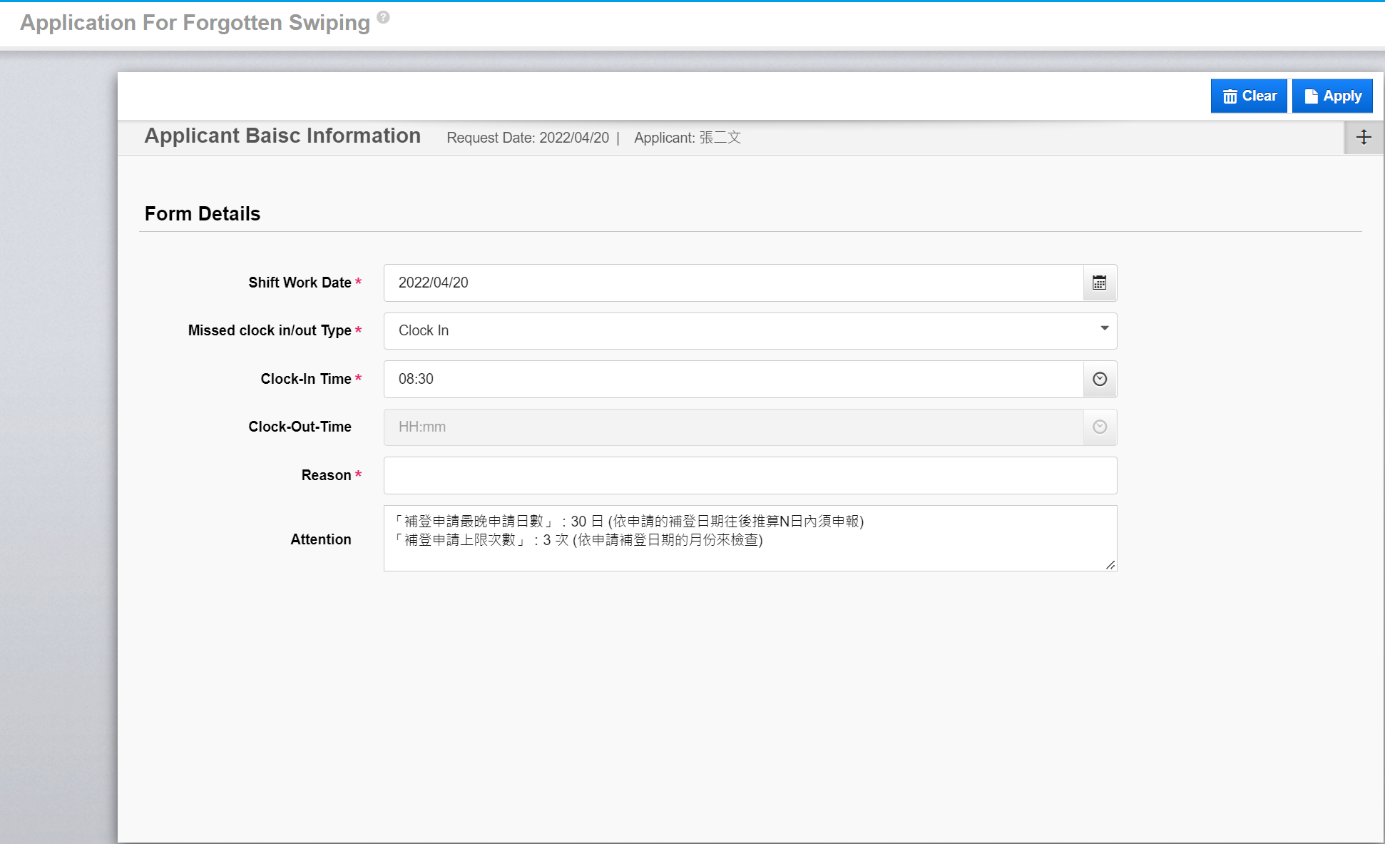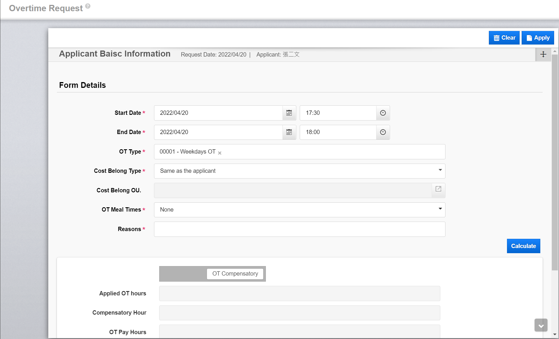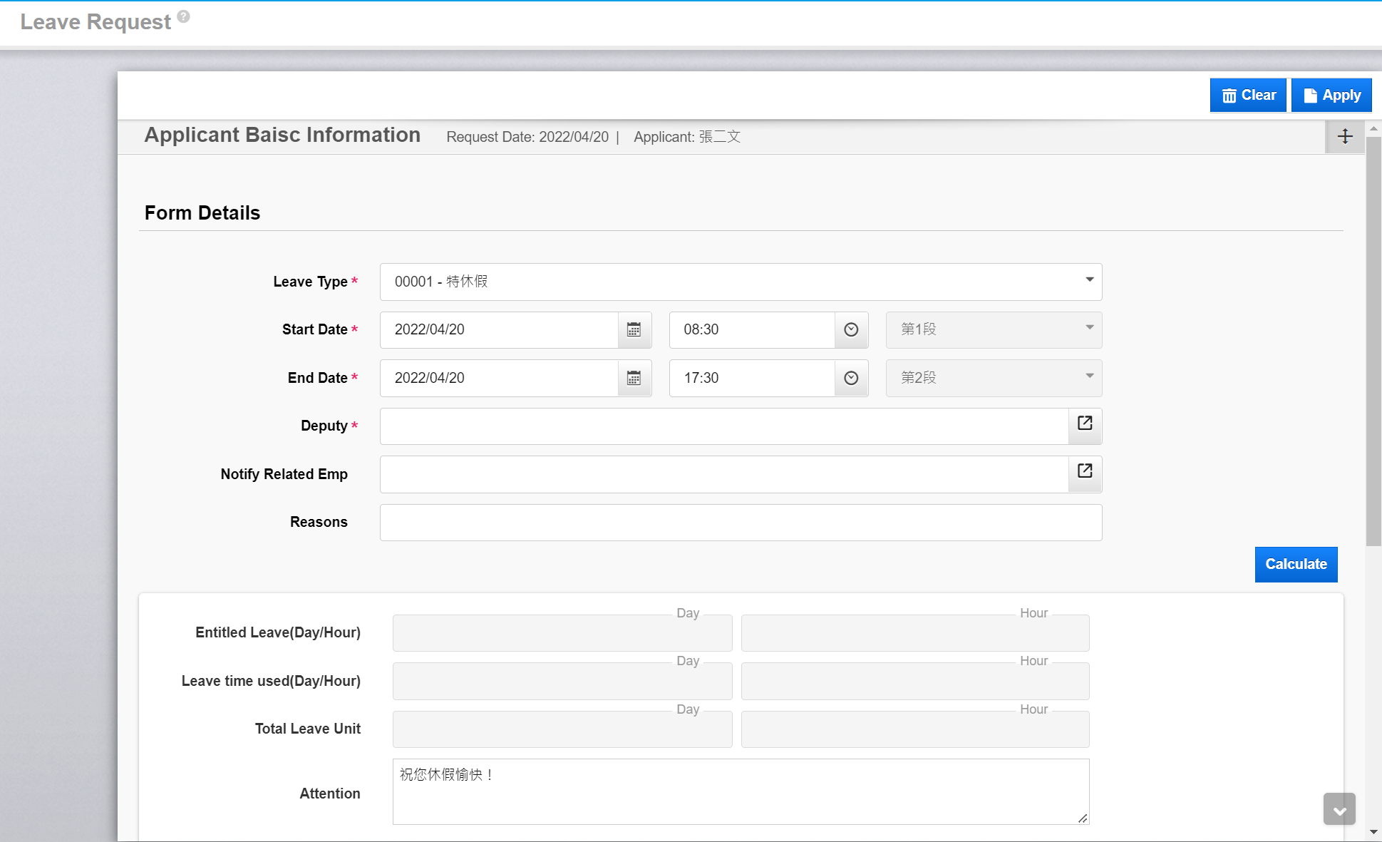 6. 有彈性班及設定請假順序時,請假申請選了某特定假別,計算時數後沒有反應