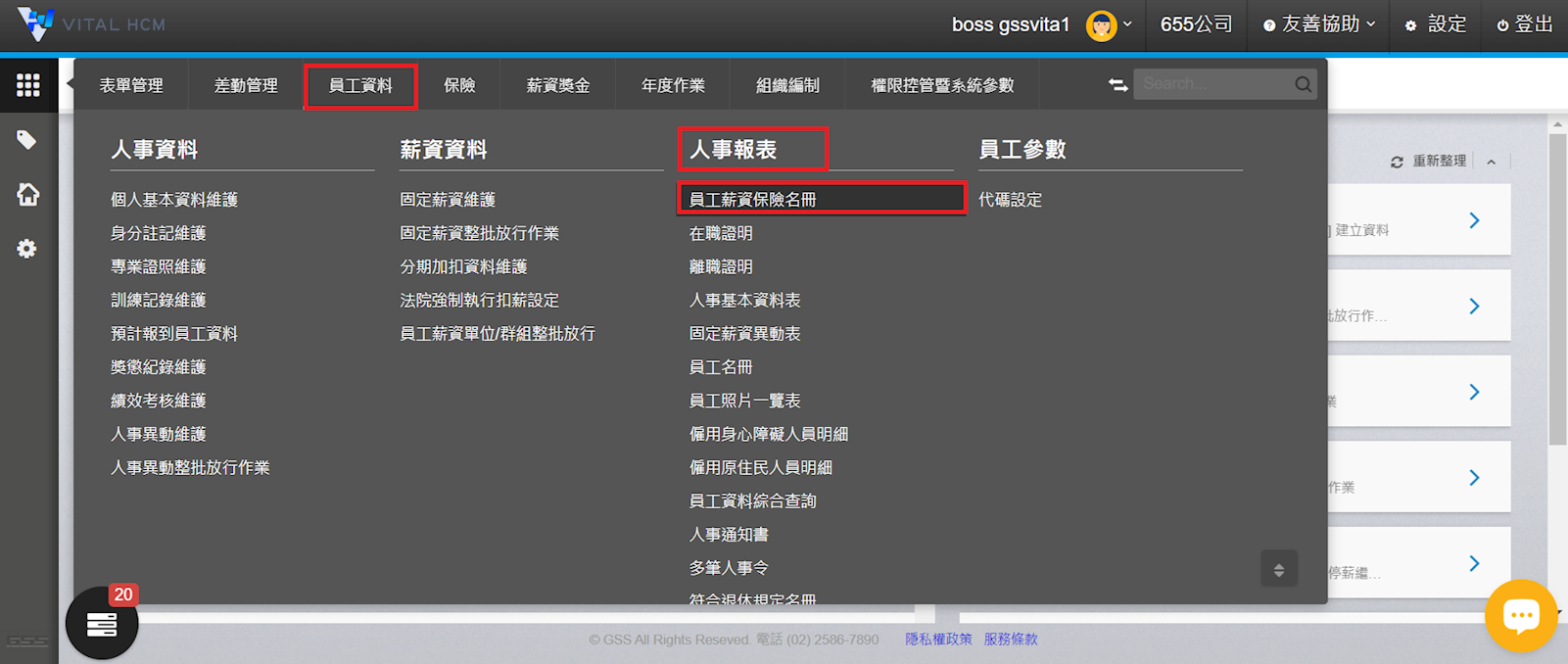 進入系統後,請點選【全站功能】>【員工資料>人事報表>固定薪資異動表】。