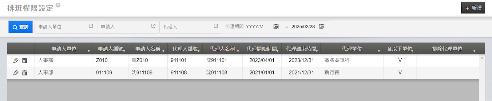 情境:因過去有兩個設定排班權限管道,若HR使用者分散設定,造成無法從單一功能查看已開放排班權限的完整清單。