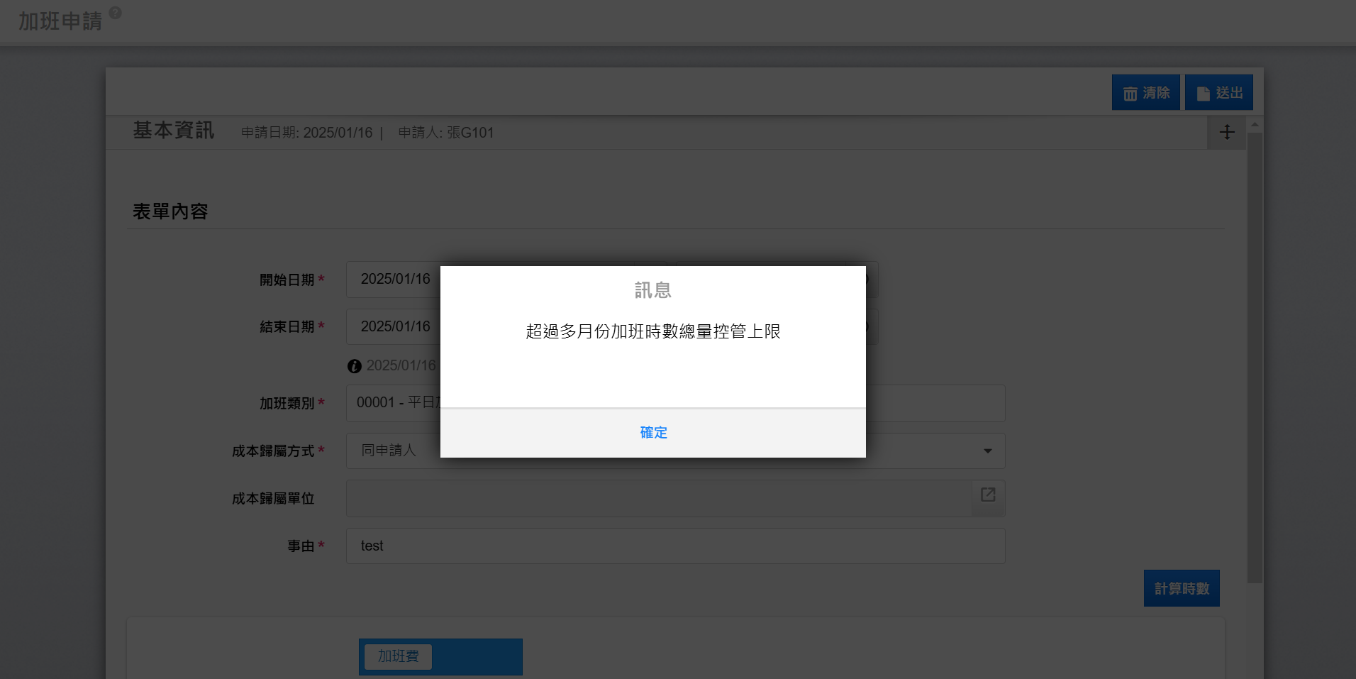 - 加班申請,夜班人員下班後繼續加班,加班時數計算有誤