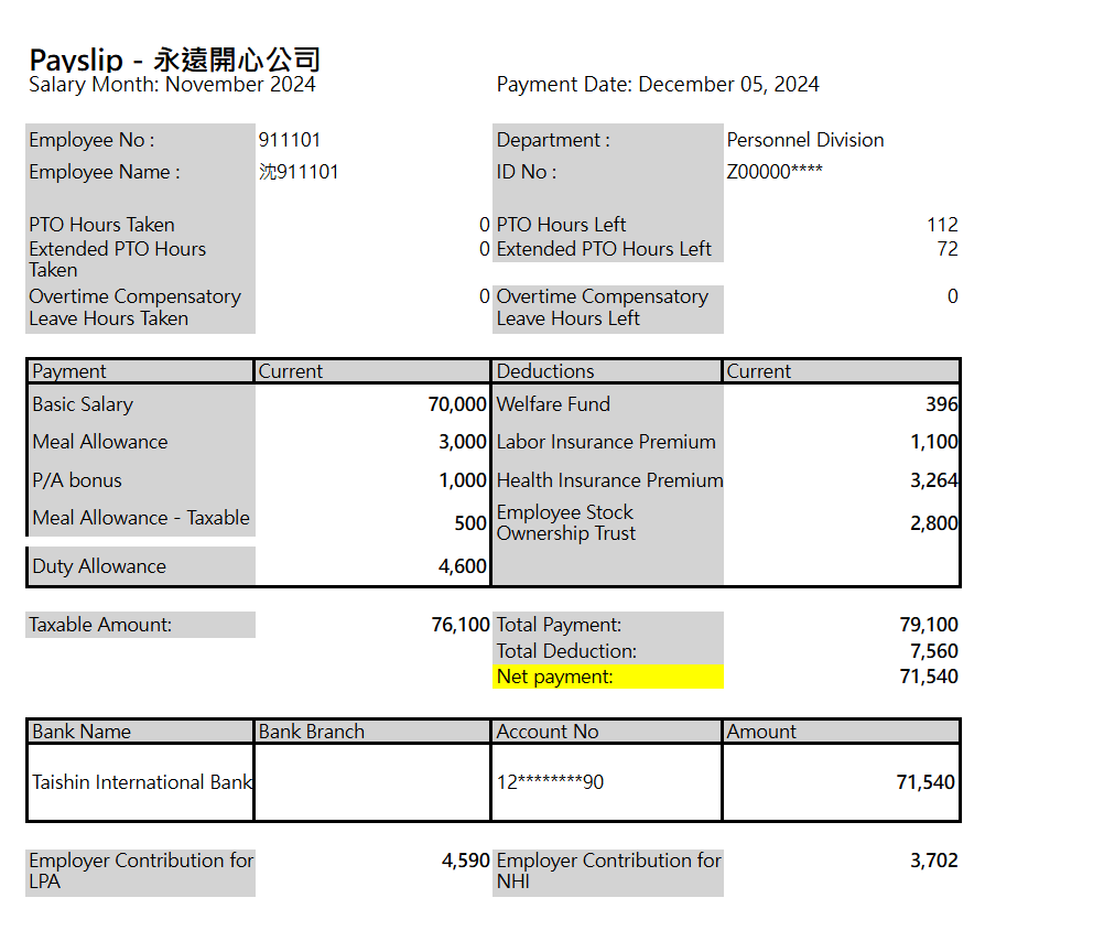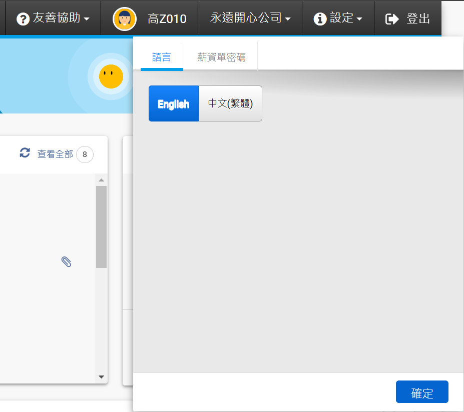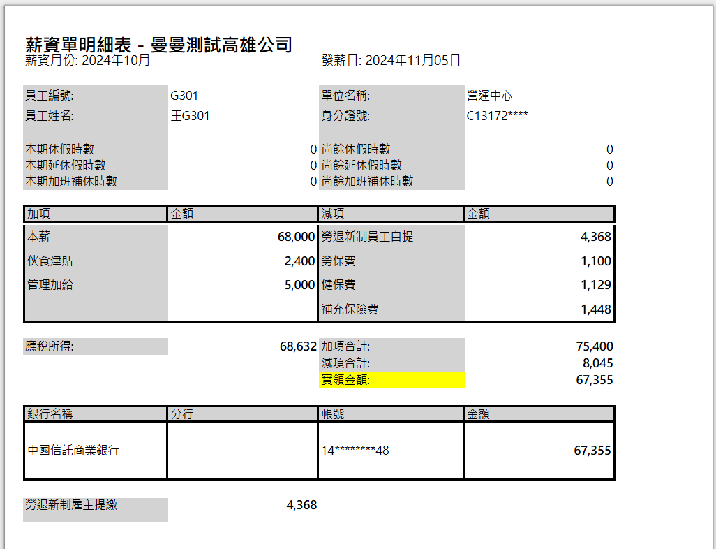 - 薪資項目名稱與設定有關,若未設定英文語系欄位,則預設仍以「繁體中文」呈現