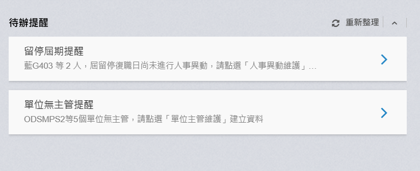 情境: 留停⼈員即將復職,於實務上也會有相關事宜要做處理,故提供待辦提醒讓 HR 能提前作業