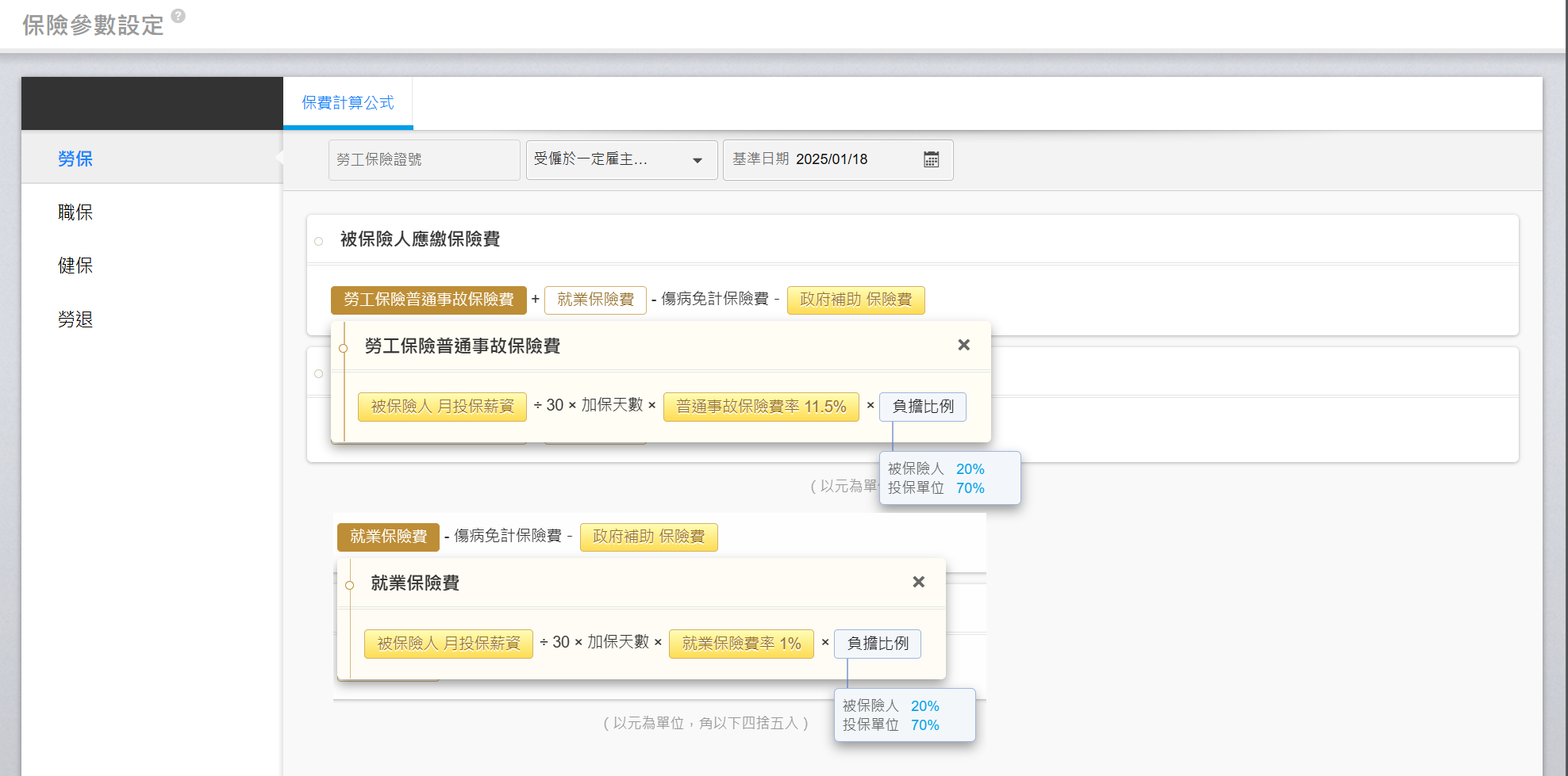 公告:勞動部公告:訂定「最低工資」,自114年1月1日生效 - 勞工保險費率調高為12.5%(含就業保險費率1%)保險費費率及負擔比例