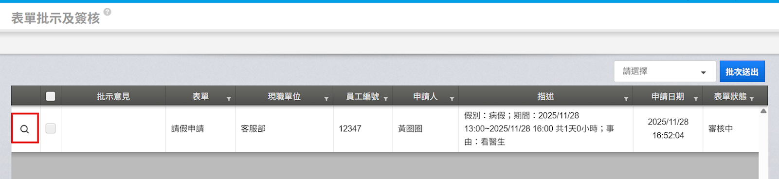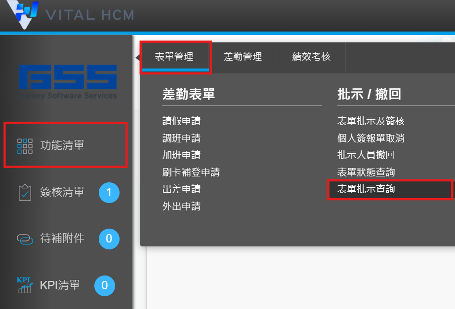 1. 請至【功能清單】>【表單管理>表單批示查詢】。