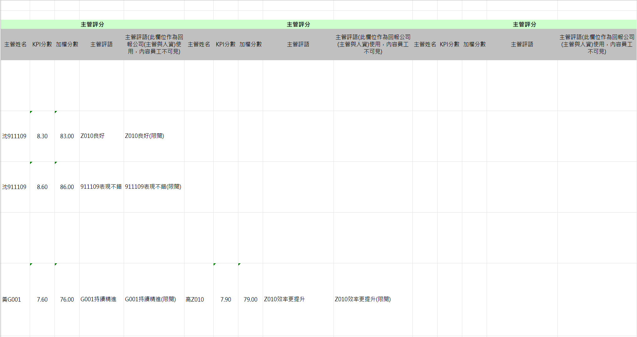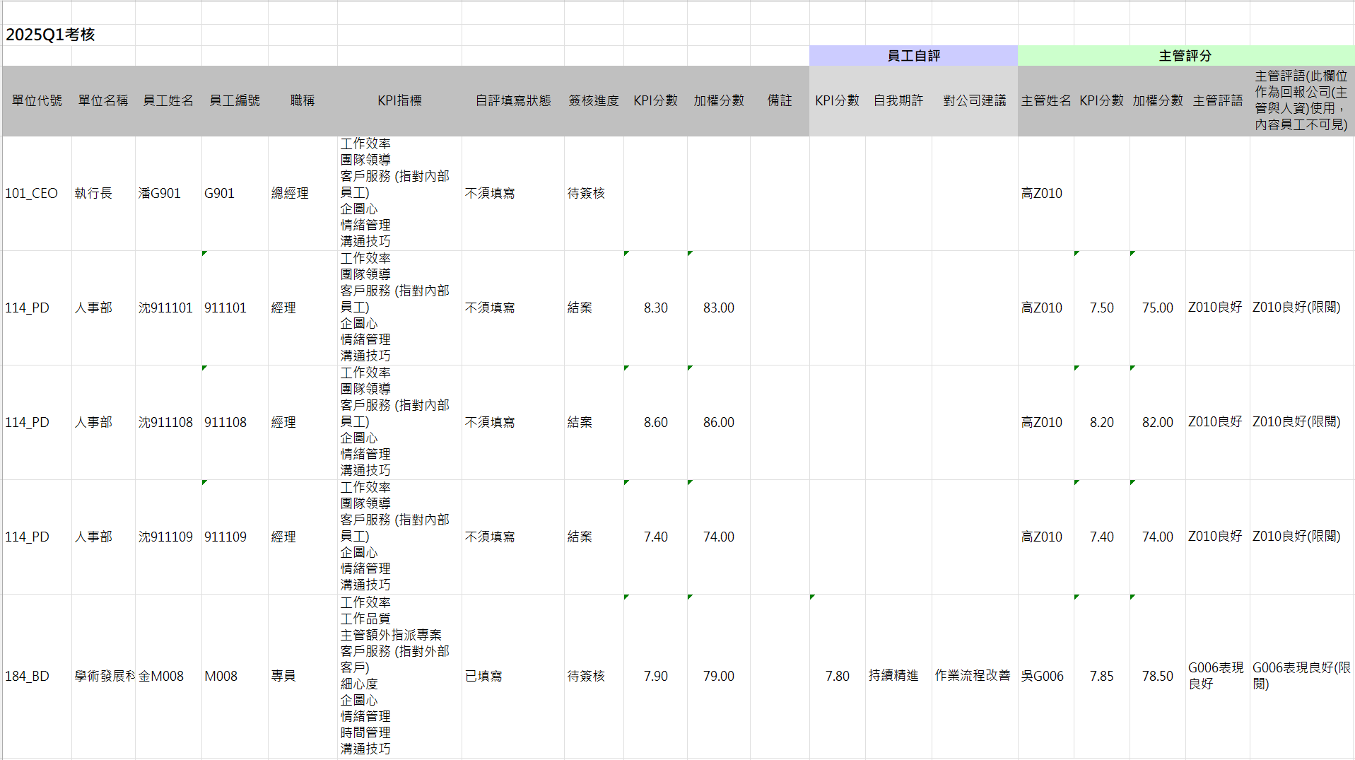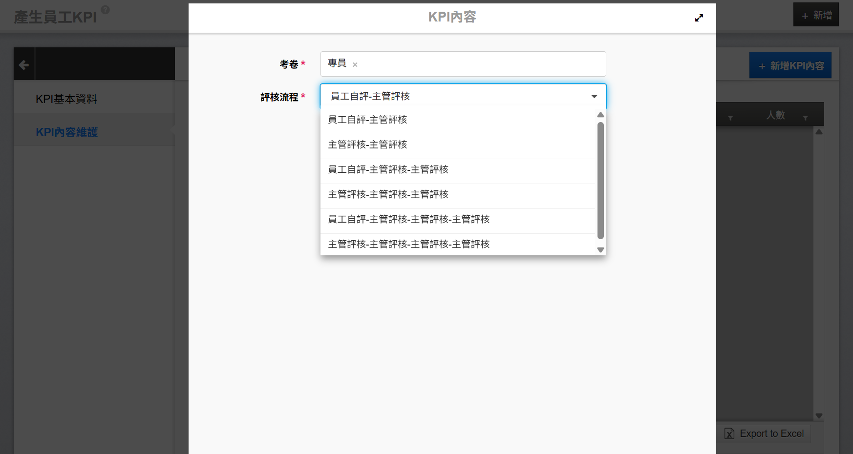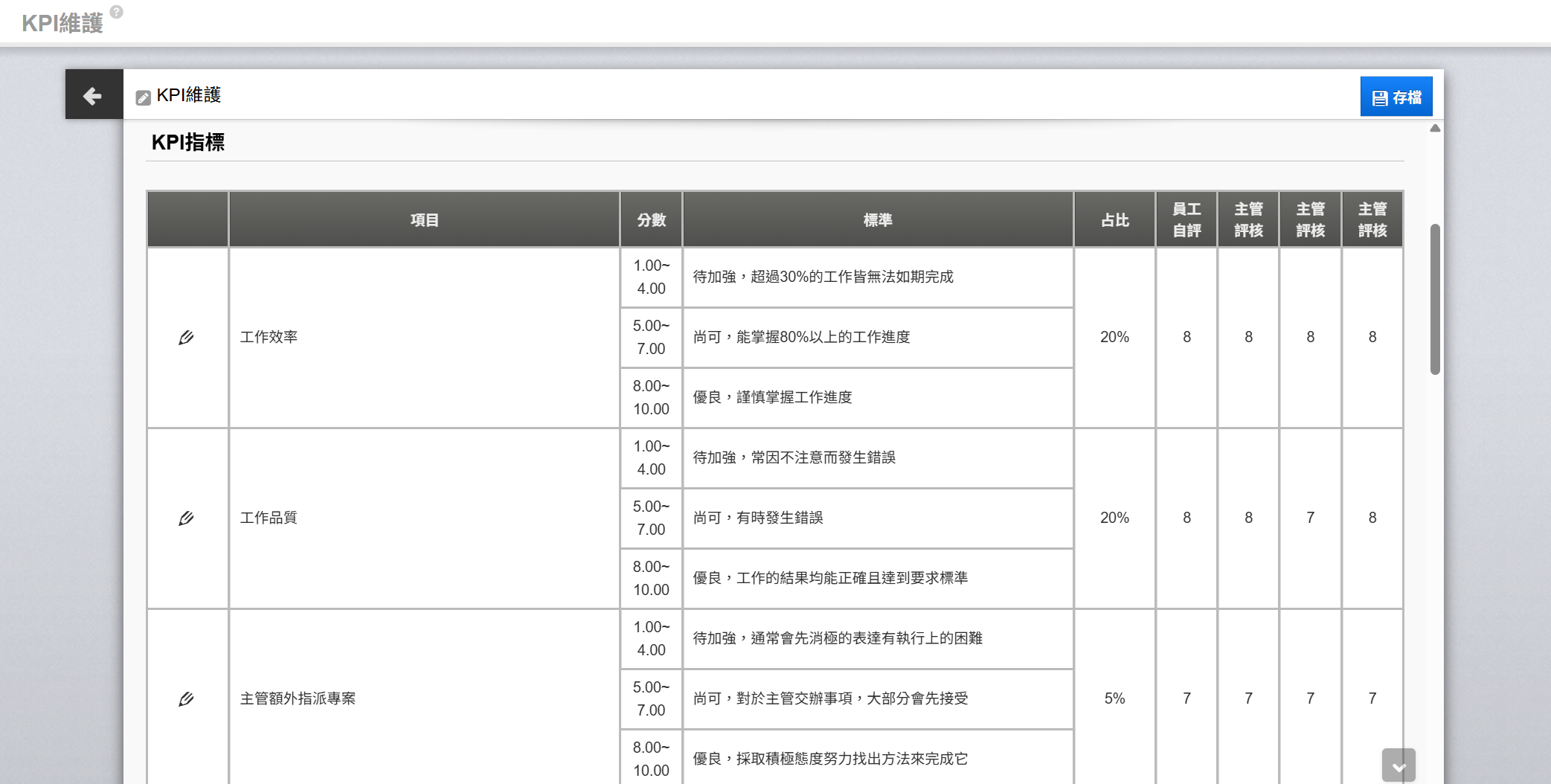 【 KPI 維護】含自評、主管評核分數及評語至多四個關卡