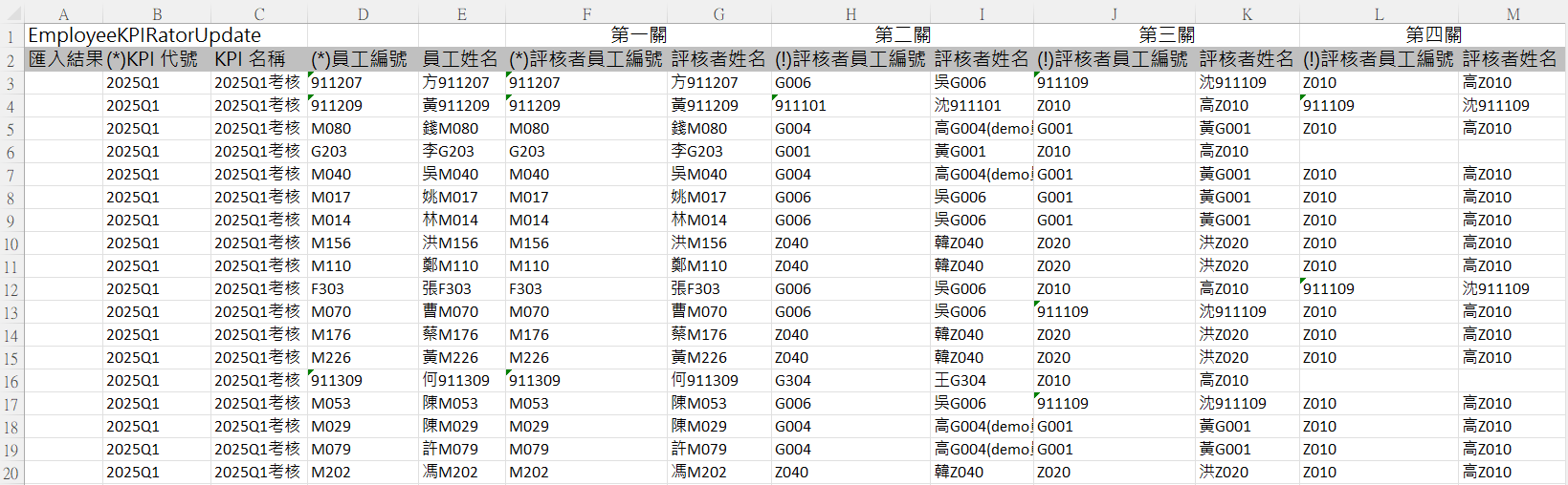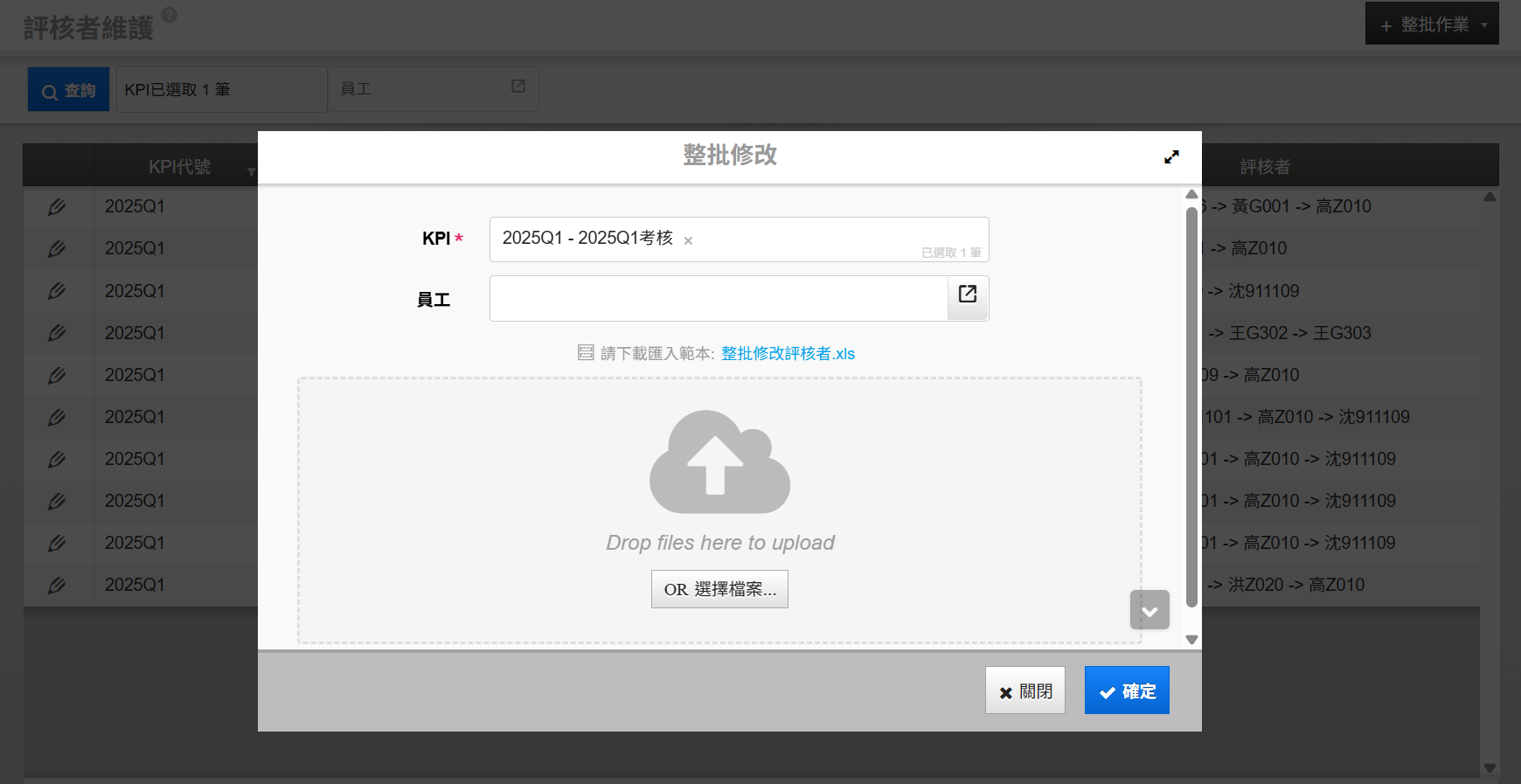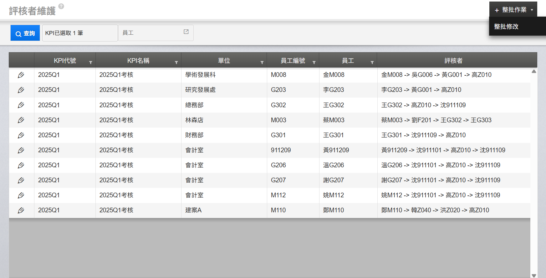 3. 【評核者維護】新增批次修改功能,針對部份人員需要有多關卡主管評核時,可批次調整