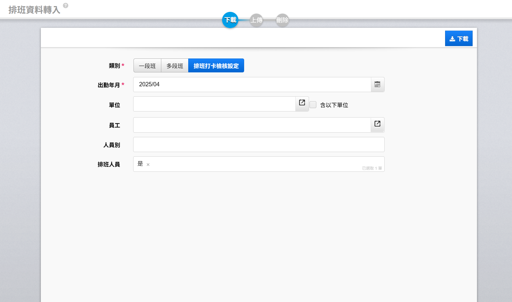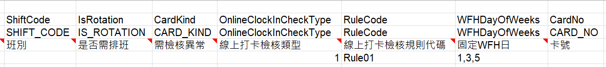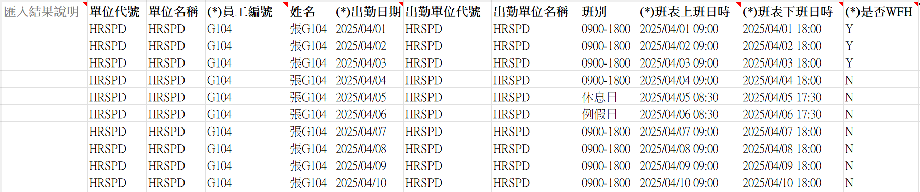 【排班資料轉入】新增「排班打卡檢核設定」類別,可指定日期設定WFH。