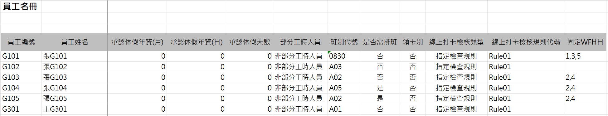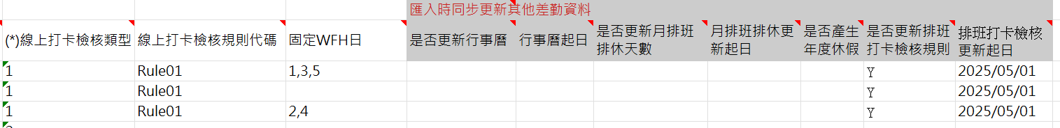 批次修改員工差勤基本資料,範本新增 WFH 設定欄位。