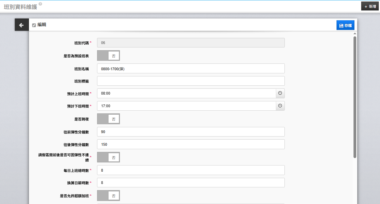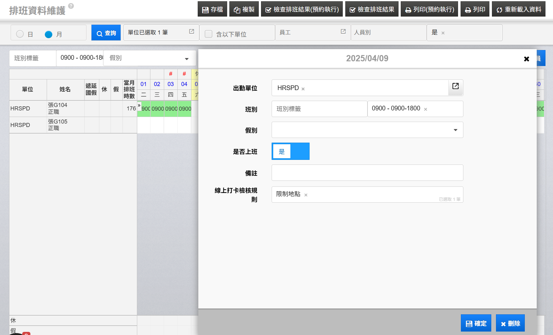 【排班資料維護】增加「線上打卡檢核規則」設定,未設定時表示不限制