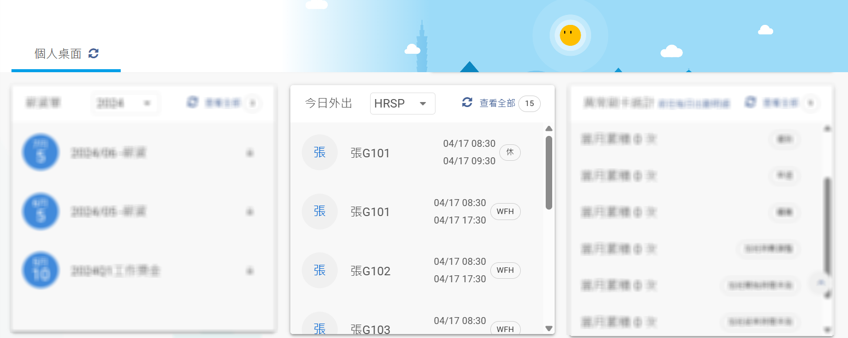 個人桌面>今日外出,顯示當日 WFH 的名單。