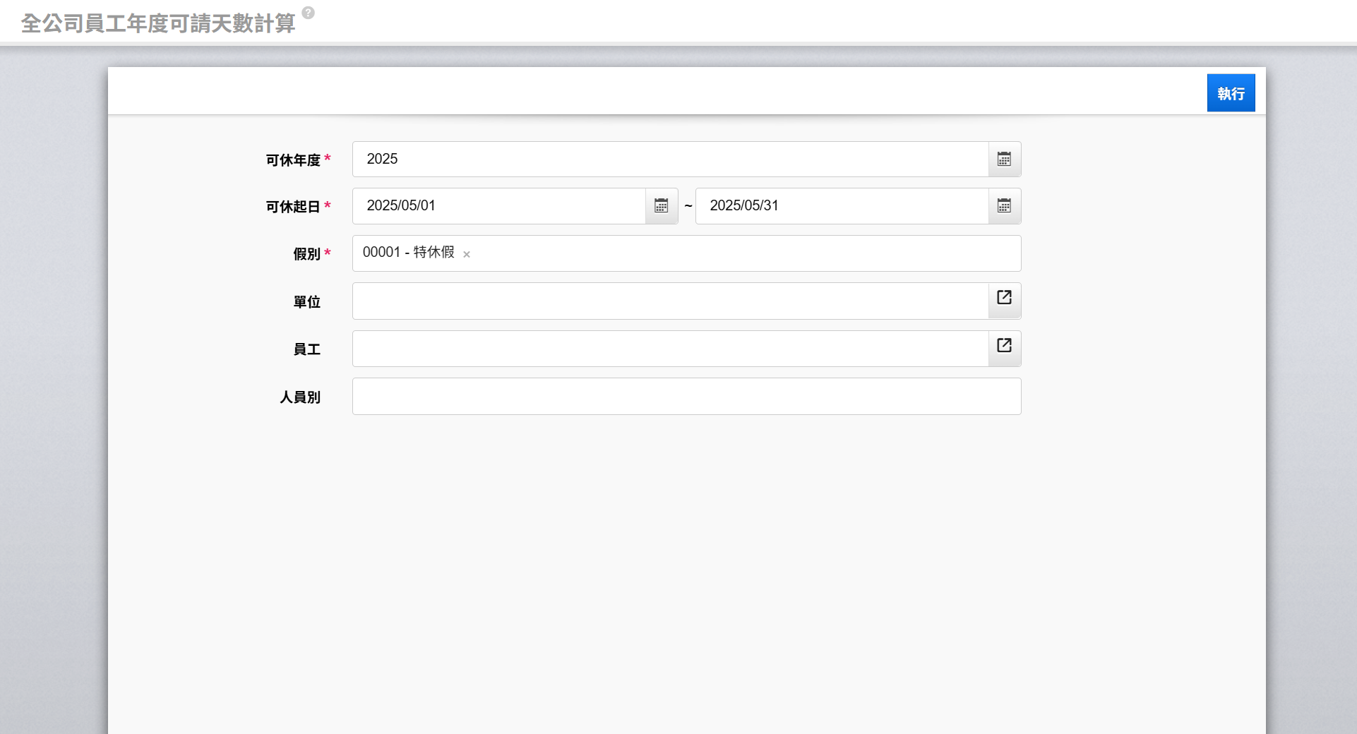 3. 【全公司員工年度可請天數計算】新增「可休起日」條件,起迄的年度需為同一年度。