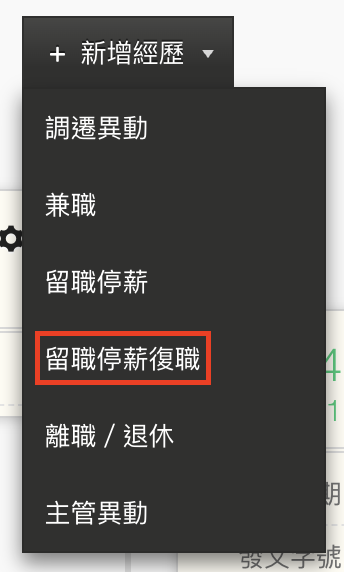 請先查詢到員工資料後,進入修改畫面,找到「任職資料」的「經歷」