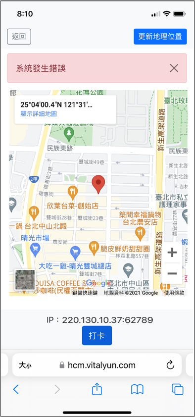 行動打卡時出現「系統錯誤」怎麼辦?
