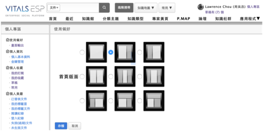 可至「個人專區」的「使用偏好」點選「畫面輸出」,勾選欲使用之首頁版面。