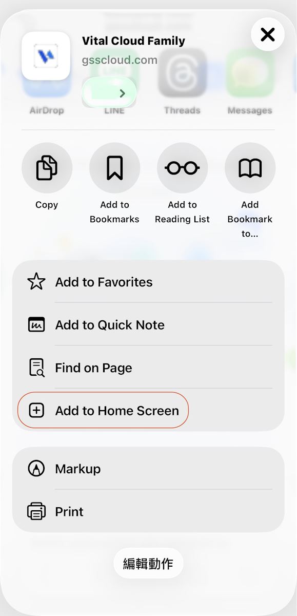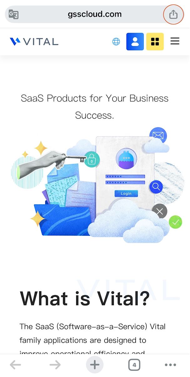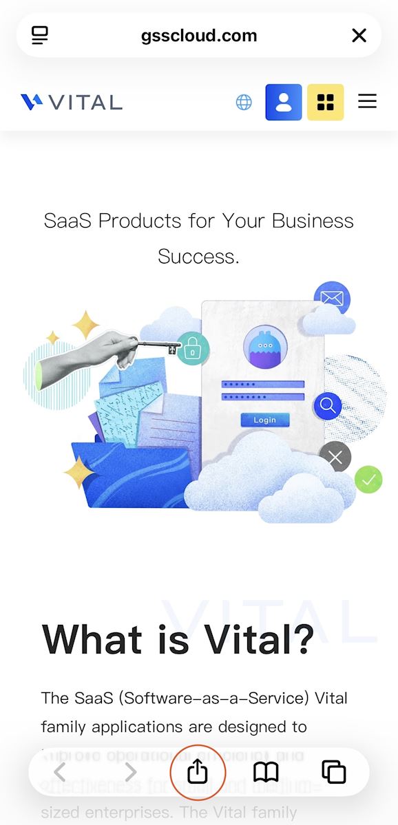 How do I add the website shortcuts of Vital Cloud products into cellphone home screen?
