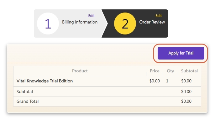 3. Once you're logged in, you will be led to the shopping cart page. Click "Apply for Trial."