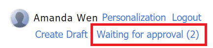 1. Select [Waiting for approval] in the top right corner. The number inside the parenthesis is the number of documents waiting for approval.