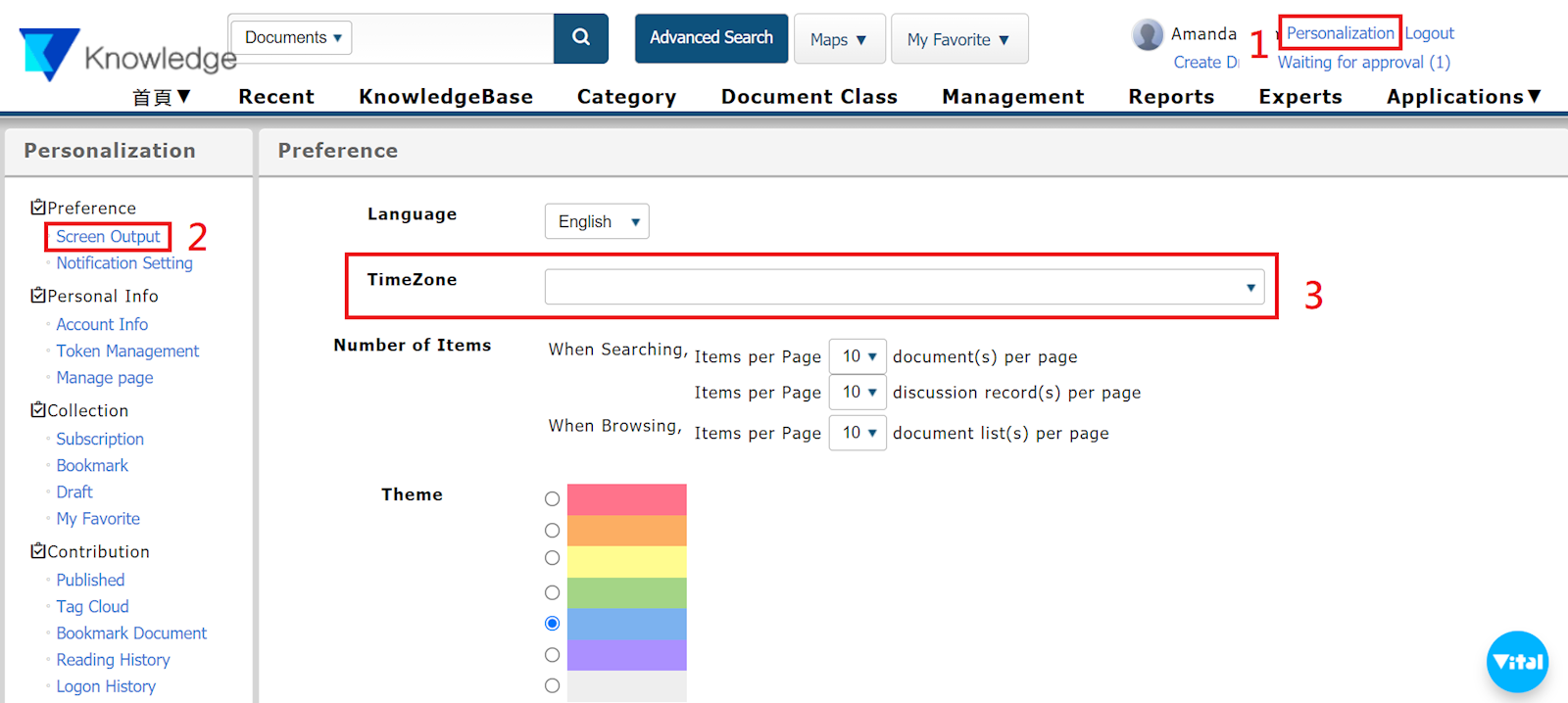 The system's default time is set according to Greenwich Mean Time (GMT). Change the time setting by going to [Personalization] > [Screen Output] > [TimeZone], and all the displayed time will be adjusted.