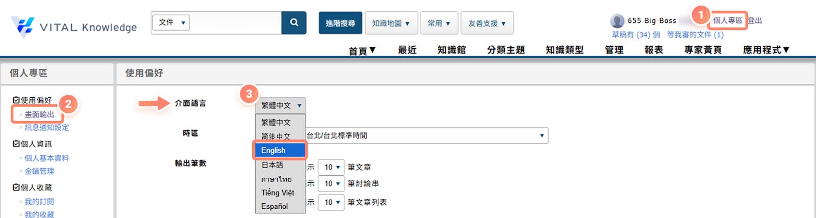 3. 將【介面語言】更改為 English,存檔後再發送的驗證信即為英文。
