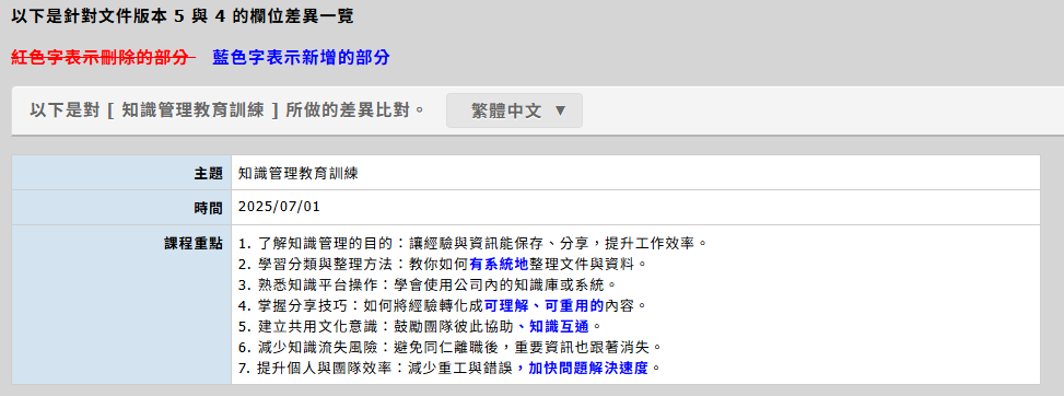 調整欄位差異比對的方式,以較新的版本與舊的版本內容進行比對,避免有時會出現以刪除線顯示新增內容。