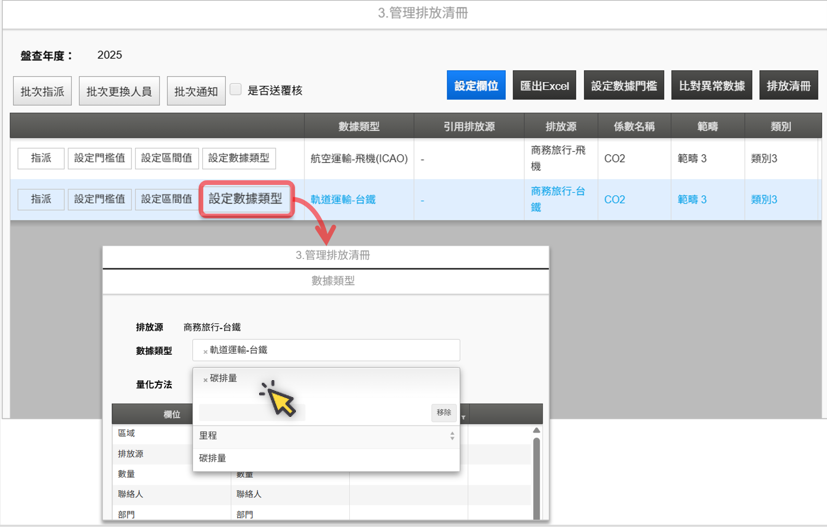 如何在管理排放清冊新增及上傳運輸類數據類型[軌道運輸-台鐵]